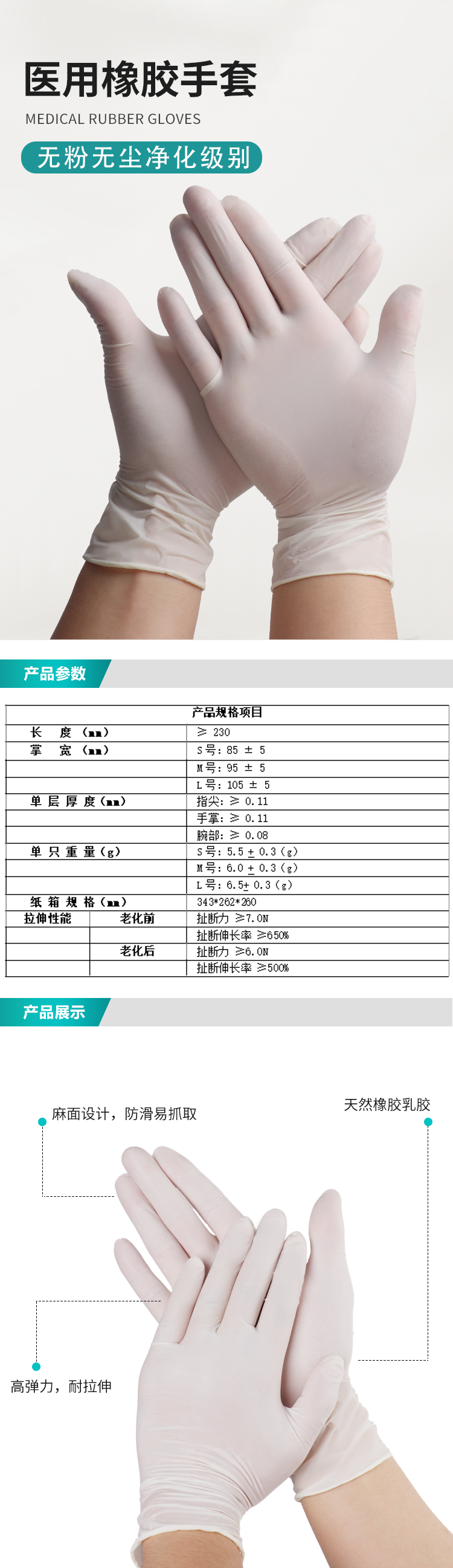 醫(yī)用乳膠手套有以下諸多優(yōu)點:首先,醫(yī)用乳膠手套的彈性非常好。它能夠緊密貼合醫(yī)護(hù)人員的手部,就像第二層皮膚一樣,讓醫(yī)護(hù)人員在進(jìn)行各種精細(xì)操作時,如手術(shù)中的器械傳遞