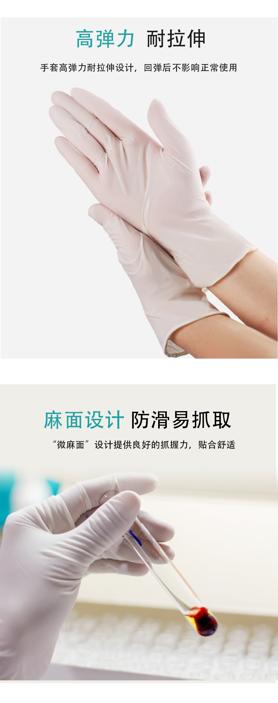 除了耐磨性和抗穿刺性,選擇乳膠手套還需要考慮以下因素:一、彈性和貼合性彈性:乳膠本身具有良好的彈性,好的乳膠手套能夠在拉伸后迅速恢復(fù)原狀。這不僅保證了手套在使用
