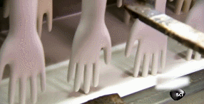 作為橡膠制品的橡膠手套的制作過程簡直不能太魔性,手套的模型是陶瓷或者鋁制成的。前方高能多圖,請大家預(yù)備好流量。