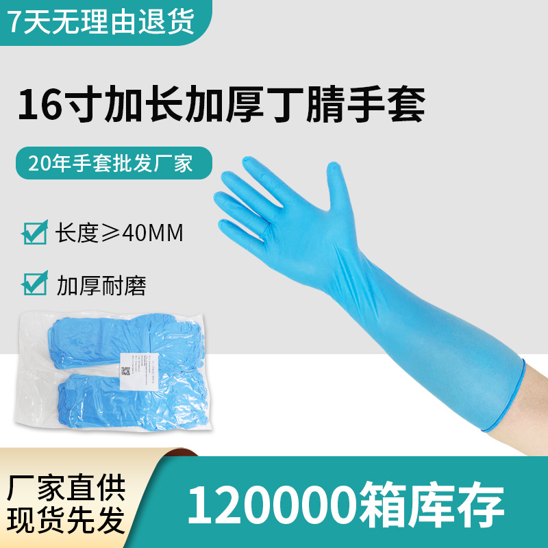 16 寸藍(lán)色丁腈手套在多個(gè)場(chǎng)景有廣泛應(yīng)用。在醫(yī)療領(lǐng)域,它常被醫(yī)護(hù)人員用于手術(shù)操作、檢查、護(hù)理等,其良好的彈性和耐用性能提供穩(wěn)定的操作感和有效防護(hù)。食品加工行業(yè)也