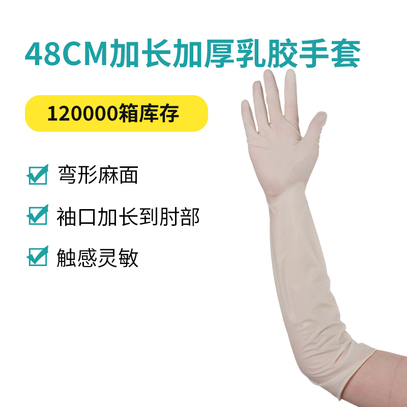 長度≥480cm 分左右手,天然橡膠制成,彈性好,彎形設(shè)計(jì),貼合度高,無粉麻面,以增強(qiáng)抓握力,袖口加長型可以戴到肘部,方便醫(yī)生診療,適用于婦科檢查和婦科診療